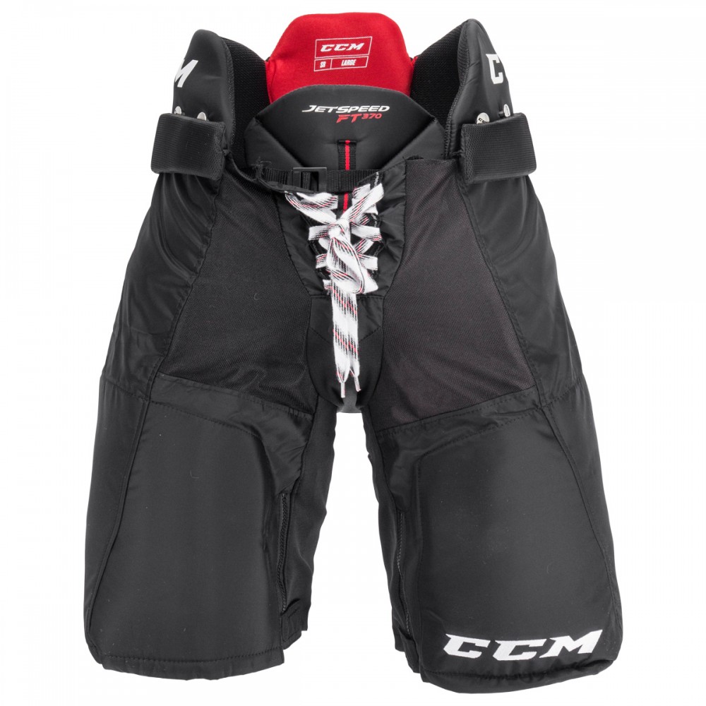 Hokejové kalhoty CCM JETSPEED FT370 z konstrukce 400D a texturovaného polyesteru poskytuje nízkou hmotnost a optimální odolnost. Vysoká úroveň ochrany je vyřešena stehenním chráničem z lisovaného PE plastu.