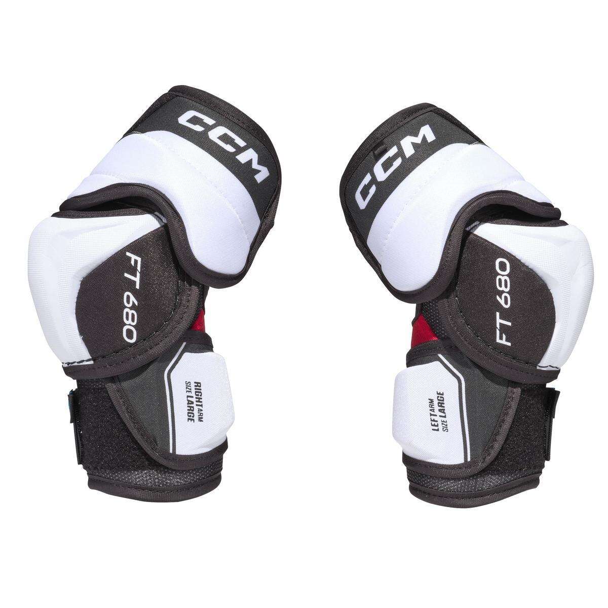 Lokty CCM Jetspeed FT680 JR se vyznačují novou hybridní třídílnou konstrukcí, která usnadňuje pohyb a věrně kopíruje klouby lidské ruky.